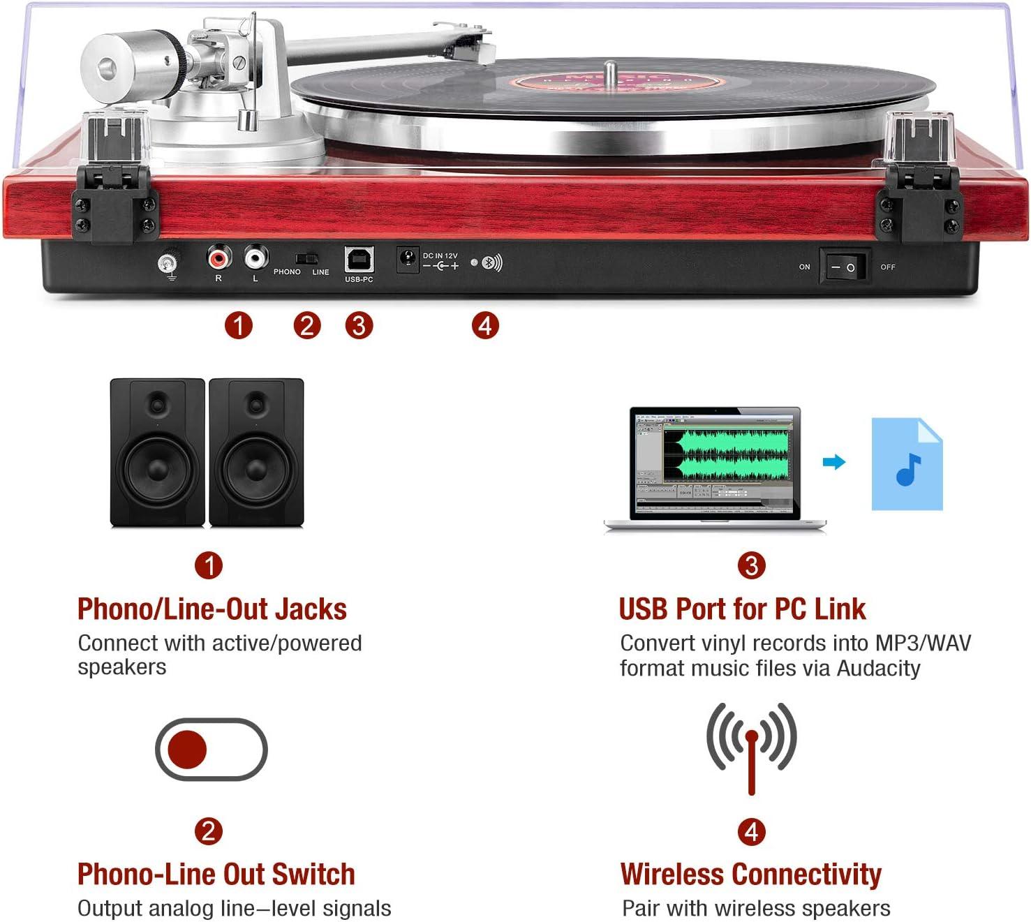 Vinyl Recording via PC: Connect this turntable to your computer via USB and encode vinyl audio into MP3s for digitalized storage and playback on your computer, smartphone or tablet; Take your favorite vinyls with you on-the-go