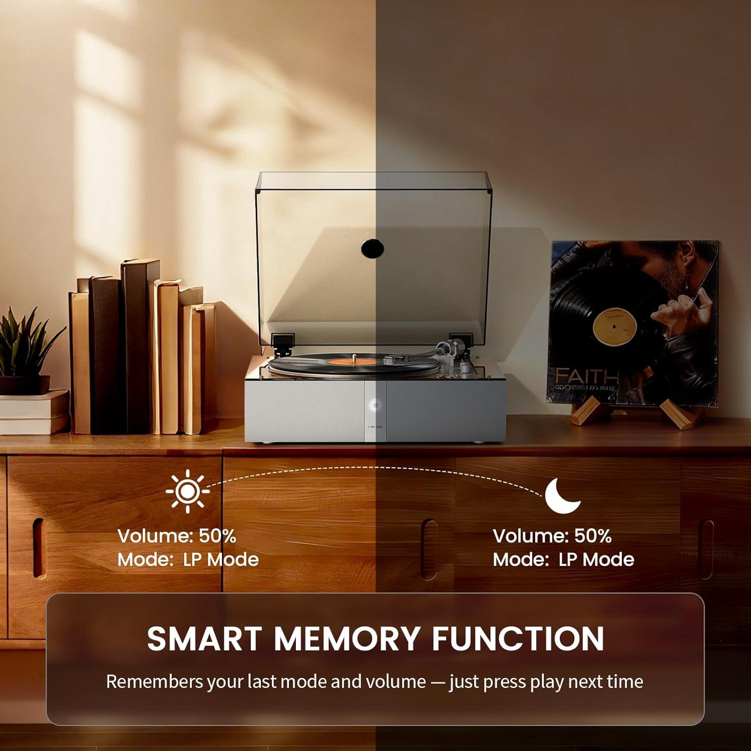 1 by ONE Fully Automatic Record Player with Built in Speakers, Automatic Repeat Function, Belt Drive Vinyl Turntable with Remote Control, Phono Preamp & DSP, AT-3600L Cartridge, 33/45 RPM